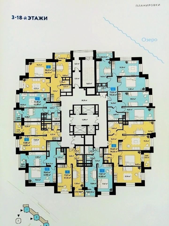 Общая площадь 96,38 м2 . Жилая площадь 53,62 м2 . Кухня 16,13 м2 .Имеется выбор этажей и планировок.