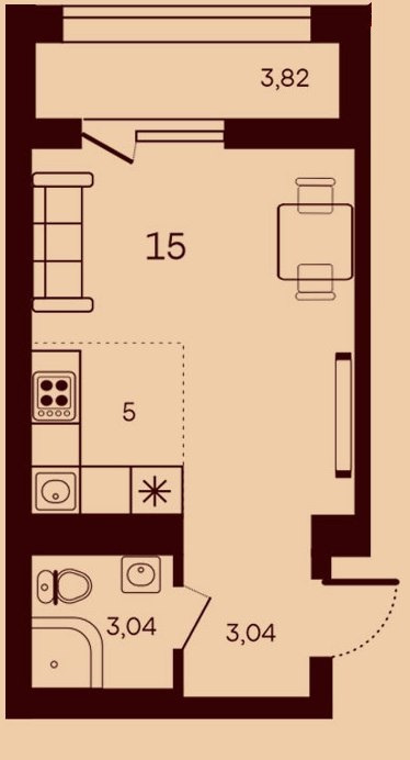 Общая площадь 29,9 кв.м. , жилая площадь 15 кв.м., кухня 5 кв. м. , Лоджия 3,82 кв.м. Имеется выбор этажей и планировок.