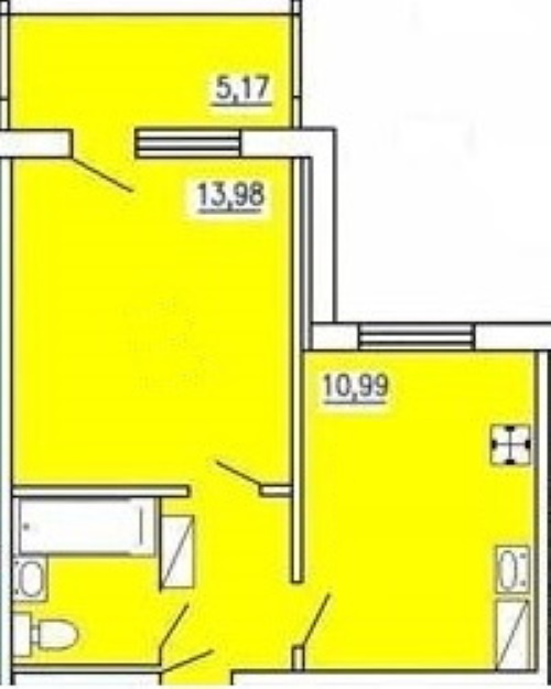 Общая площадь 46,17кв.м. , жилая площадь 13,89кв.м., кухня 13,90кв. м., сан.узел раздельный , лоджия 5,17кв.м. . Имеется выбор этажей и планировок .