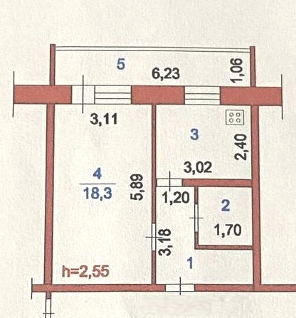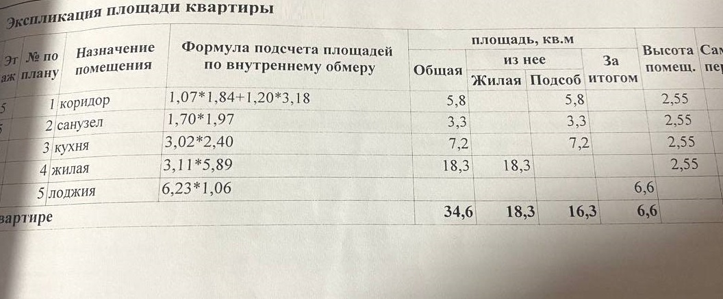 Площадь общая 34,6 кв.м. + лоджия 6,6 кв.м с внутренней отделкой , комната 18,3 кв.м. , кухня 7,2 кв.м. , не угловая.