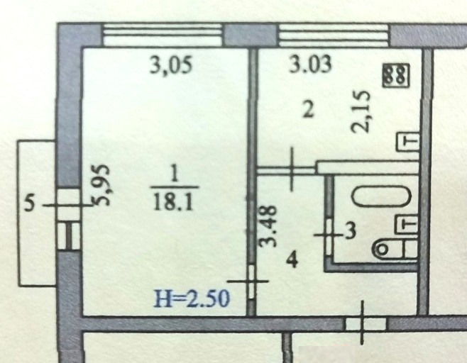 Общая площадь 34,8 кв.м. плюс балкон 2,6 кв.м. , комната 18,1 кв.м. , кухня 6,7 кв.м..
