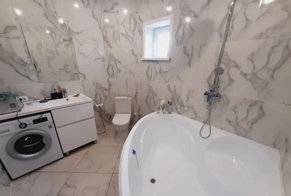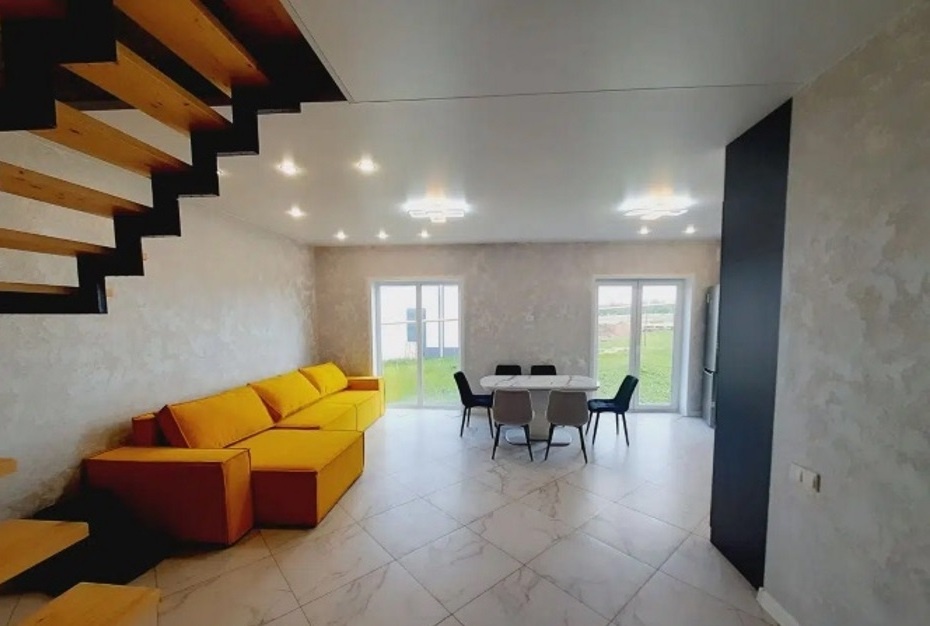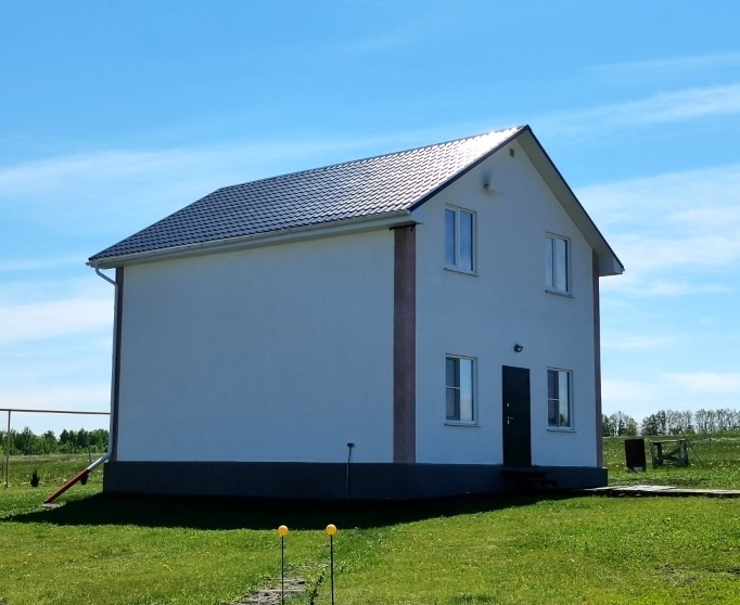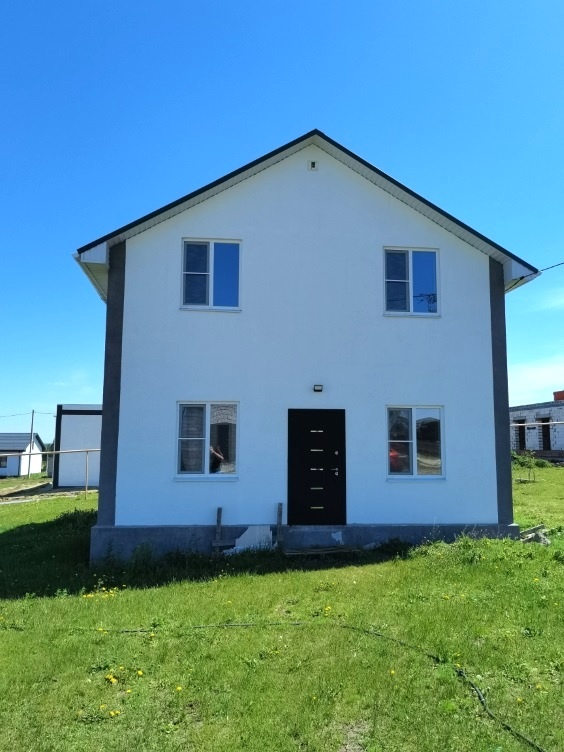 Площадь: Общая 124 кв. м. (2 этажа) ; жилая 59 кв. м. - (5 комнат 8.4, 12, 11, 14 и 12 кв. м.) ; кухня-гостиная 27 кв. м.; Цокольный этаж - высота 1,5 м . Земельный участок: - 10 соток, прямоугольной формы.