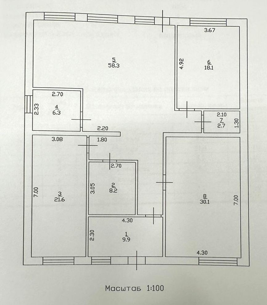 Общая площадь 162,9 кв.м. , 3 комнаты : 18,1 кв.м. , 21,6 кв.м. , 30.,1кв.м. , кухня-гостиная 58,3 кв.м. , 2-а сан/узла 8,2 кв.м.и 2,7кв.м. , высота потолка 3,1 м .