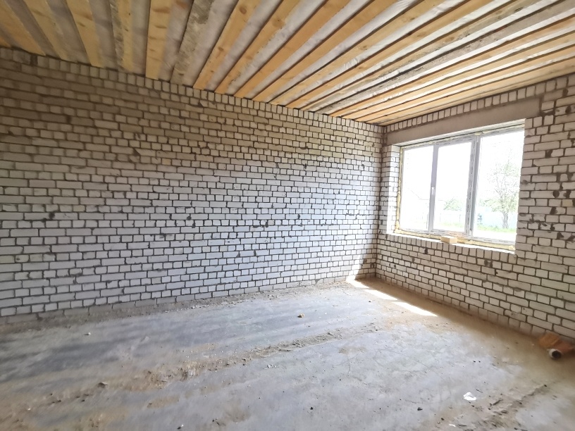 Качественная черновая отделка : стяжка , штукатурка ( на фото нет , т.к. сделаны ранее) . Установлен газовый котел , проведено лучевое отопление .по всему дому ( теплые полы) .